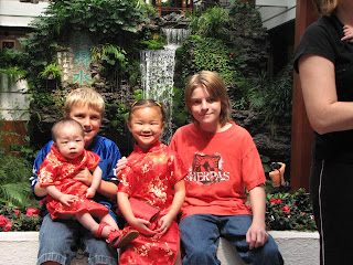 One of the pictures is of FuNi (this was the little girl we applied for from special needs. It was neat to see her (in our travel group) with her new family. Three of the pictures show Lexi during the doctor visit. The last picture shows Lexi right after the visit... She was tired.